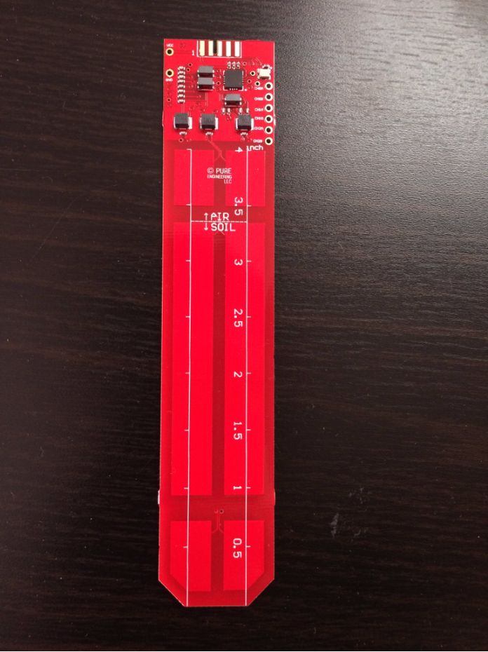 Design a soil moisture sensor device using the FDC2214 chip and co-planer metal plates. This chip is connected to a PureModule which contains a nRF52 micro-controller. The micro controller will use Bluetooth Low Energy to send packets to a connected smartphone for user to examing soil moisture data. For more information click here.